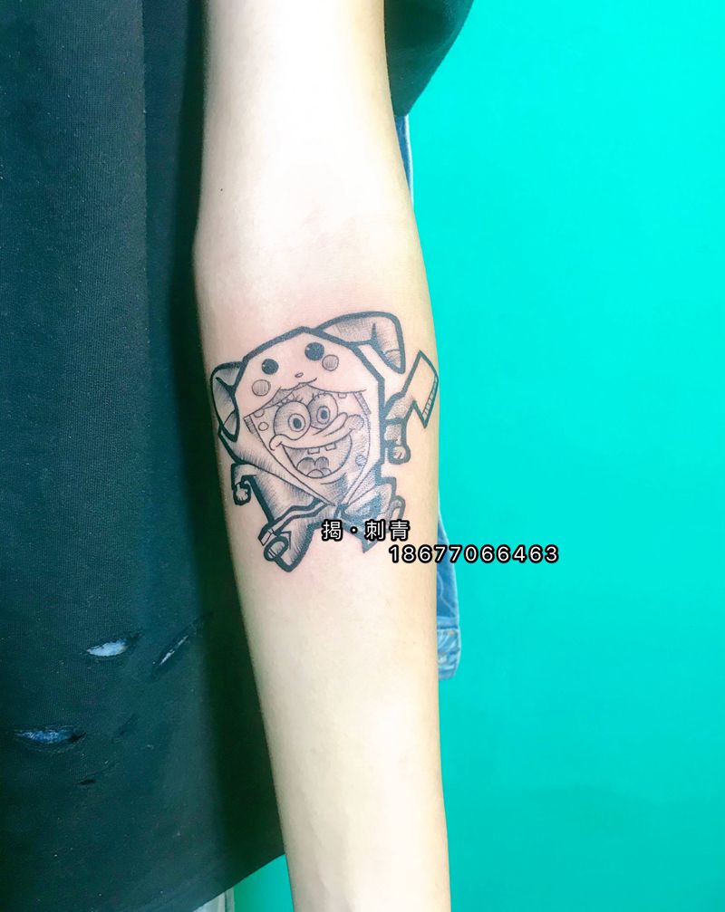 当前位置: 首页 >广西南宁市纹身店-揭 ·刺青纹身图案>海绵宝宝纹身图片_手臂New School纹身图案