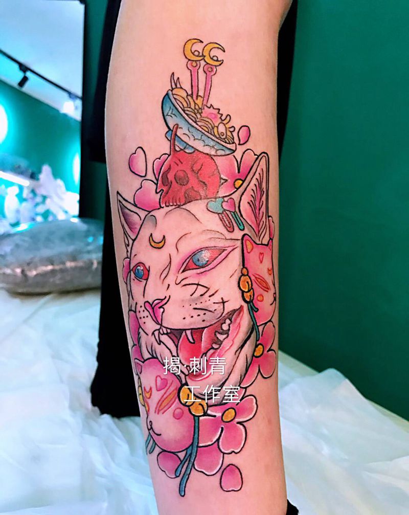 当前位置: 首页 >广西南宁市纹身店-揭 ·刺青纹身图案>猫咪纹身图片_腿部水彩纹身图案