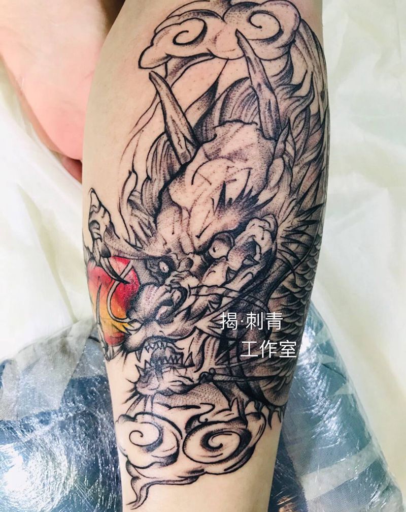 当前位置: 首页 >广西南宁市纹身店-揭 ·刺青纹身图案>小腿龙纹身图片_腿部水彩纹身图案