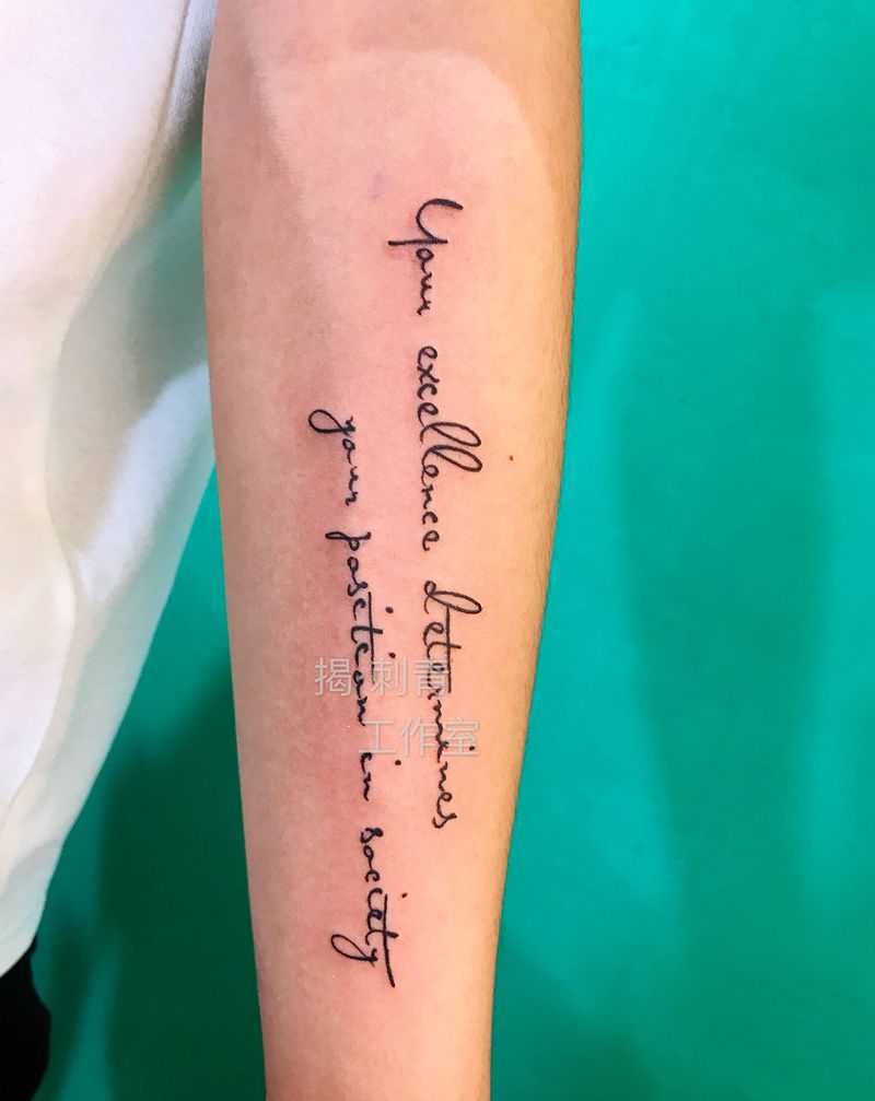当前位置: 首页 >广西南宁市纹身店-揭 ·刺青纹身图案>英文纹身图片_手臂花体字纹身图案