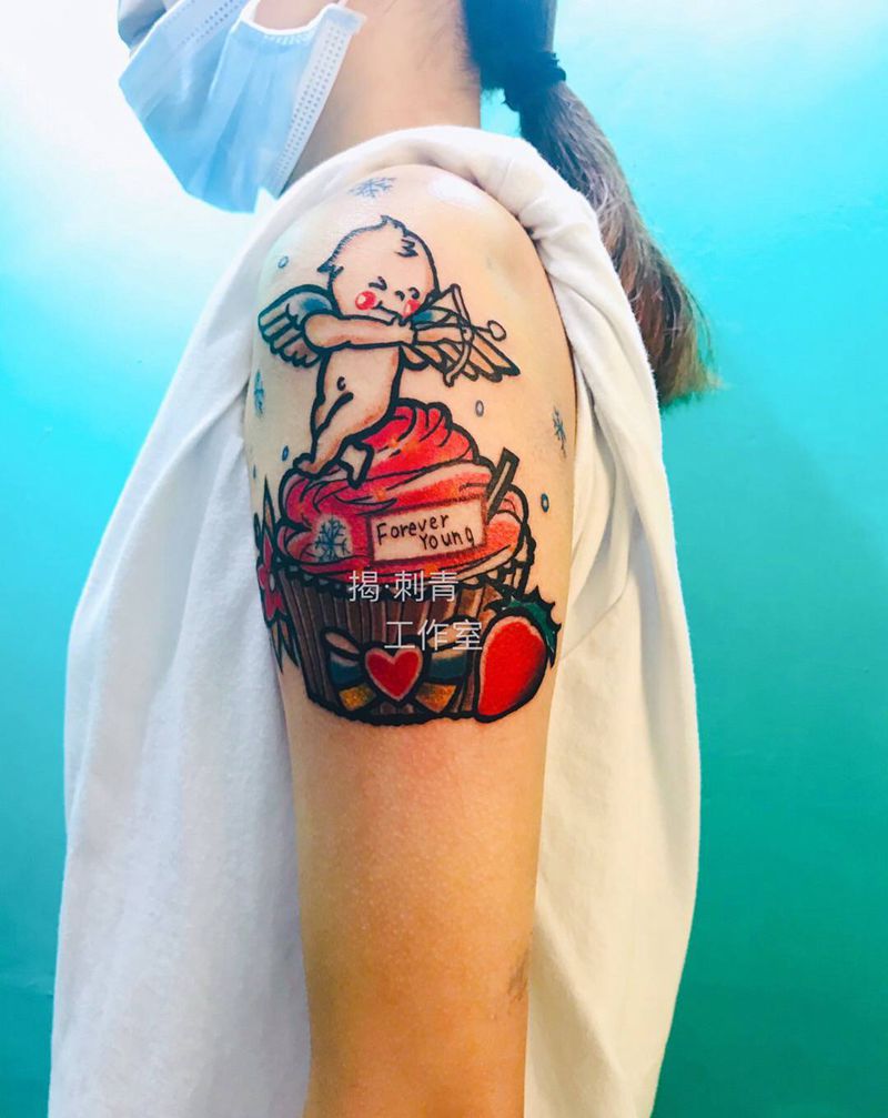 当前位置: 首页 >广西南宁市纹身店-揭 ·刺青纹身图案>丘比特纹身图片_手臂Old School纹身图案