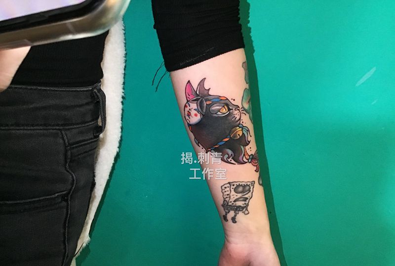 当前位置: 首页 >广西南宁市纹身店-揭 ·刺青纹身图案>遮盖旧图纹身图片_手臂水彩纹身图案