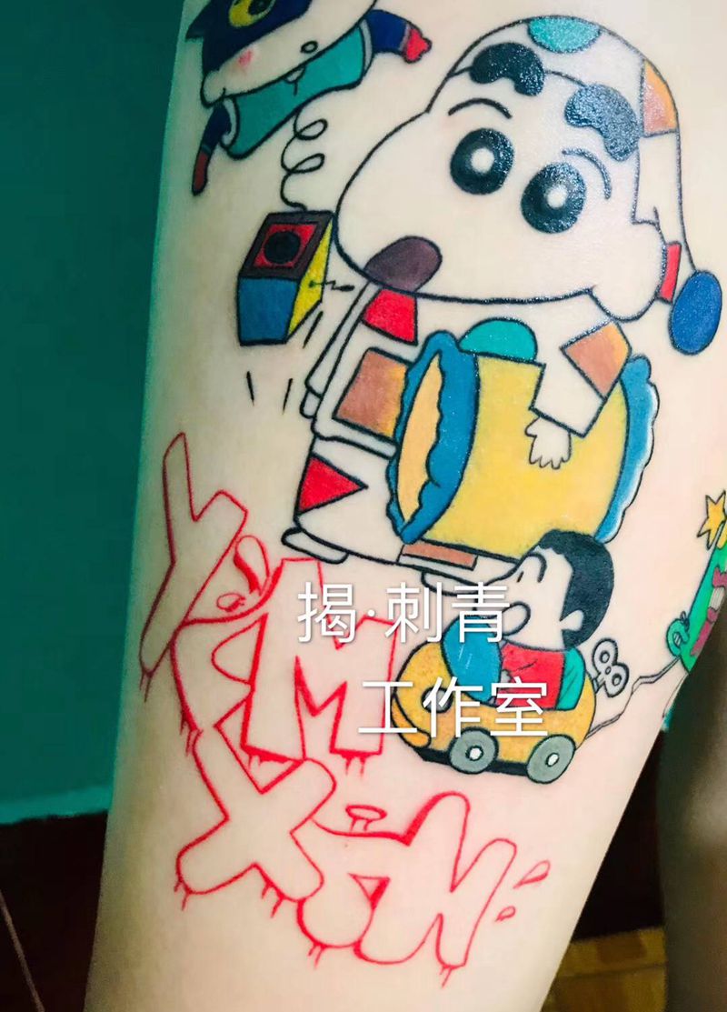 当前位置: 首页 >广西南宁市纹身店-揭 ·刺青纹身图案>蜡笔小新纹身图片_腿部水彩纹身图案