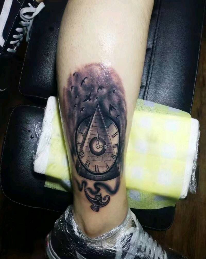 • T包小腿吹火男+阿多福纹身图片_腿部老传统新传统吹火男阿