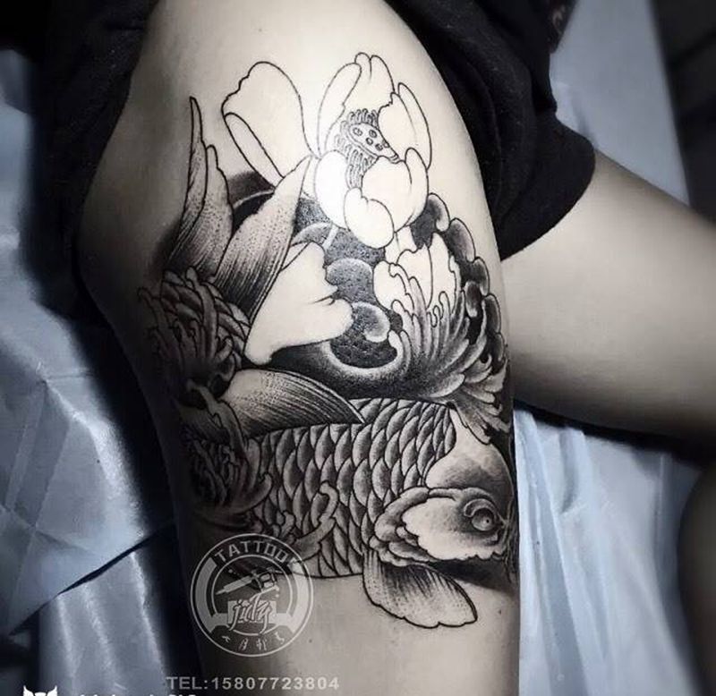 鱼-彩色待续!纹身图片_未完作品动物腿部纹身图案