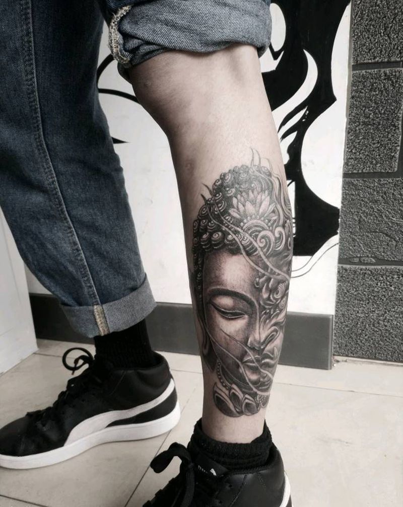 佛与魔,一念之间纹身图片_腿部新传统纹身图案