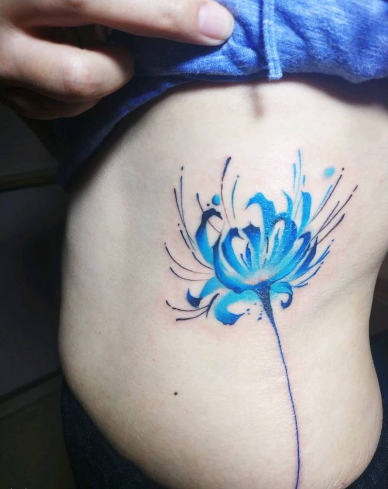 彼岸花纹身图片_腰部水彩纹身图案