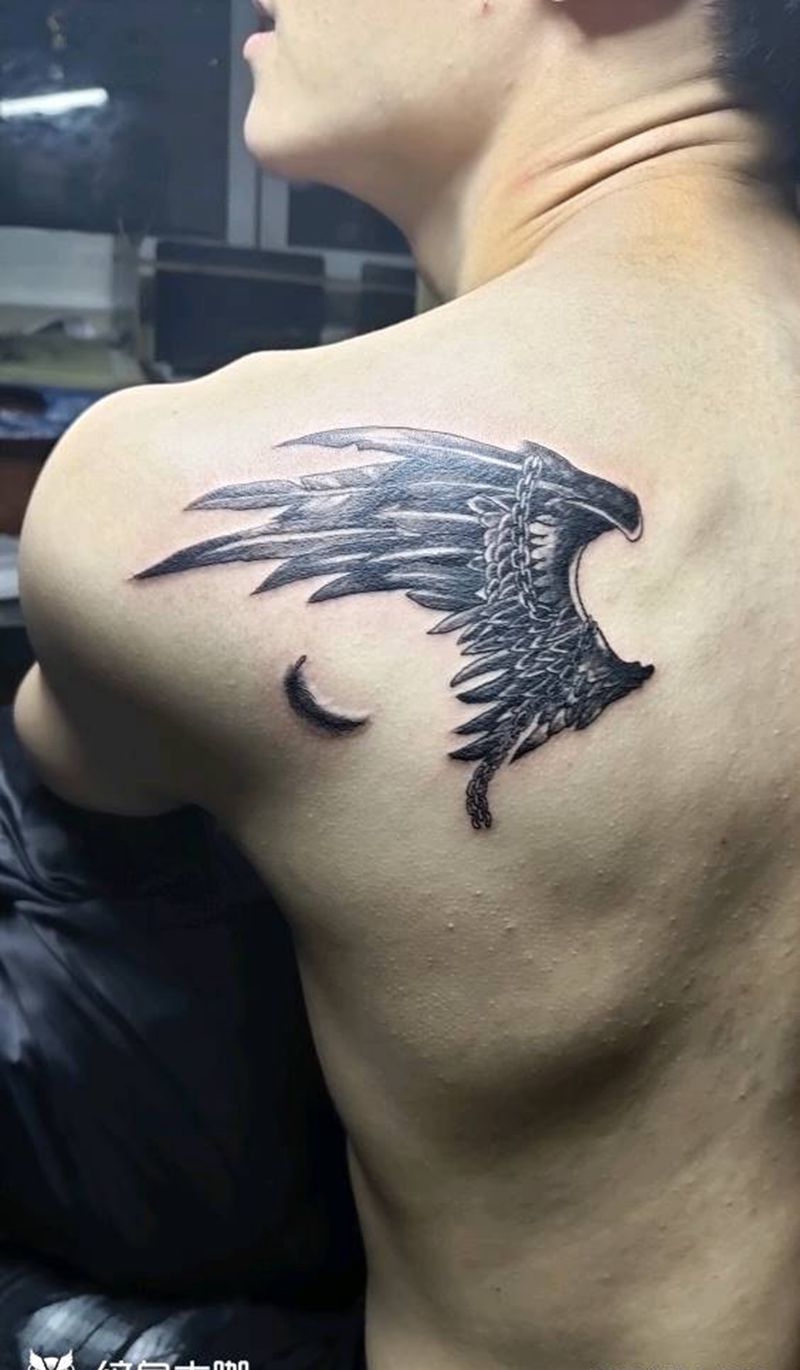 当前位置: 首页 >广西柳州市纹身店-潮拜刺青工作室纹身图案>情侣纹身翅膀纹身图片_肩部欧美写实图腾翅膀,锁链纹身图案