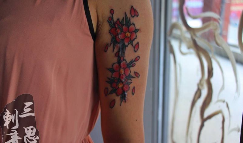 当前位置: 首页 >广西桂林市纹身店-三思刺青纹身图案>樱花遮盖痕迹纹身图片
