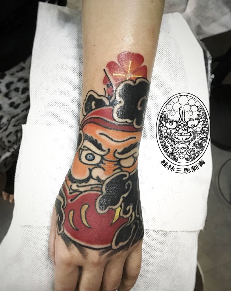 当前位置: 首页 >广西桂林市纹身店-三思刺青纹身图案>手背遮盖纹身图片_手臂手部新传统纹身图案