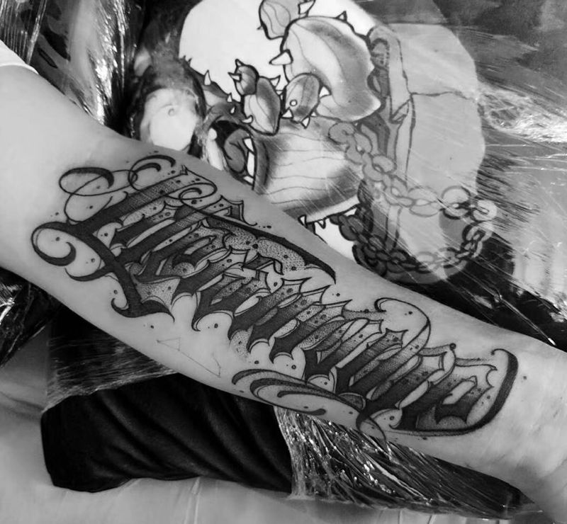 当前位置: 首页 >广西北海市纹身店-7号铁刺青纹身图案>花体纹身图片_手部花体字纹身图案
