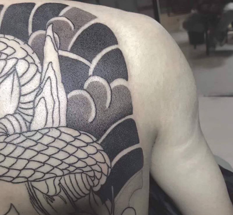 • 黑灰满背纹身图案