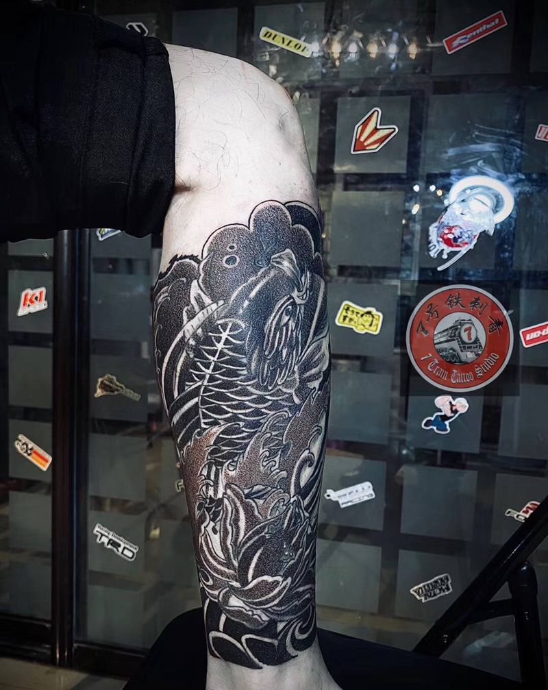 • T网红王老大花腿龙纹身图片_腿部新传统纹身图案