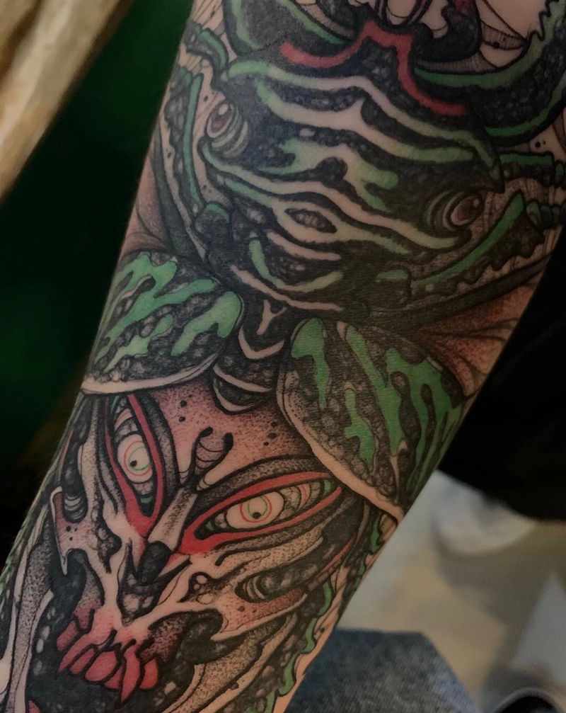 西瓜绿甲虫纹身图片_手臂纹身图案