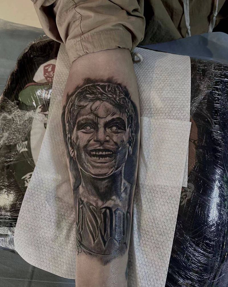 当前位置: 首页 >广西北海市纹身店-7号铁刺青纹身图案>黑灰写实纹身图片_手臂欧美写实纹身图案