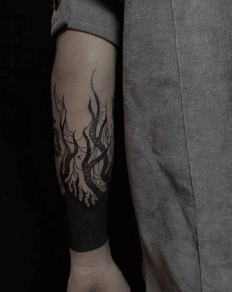 小黑臂点缀遮盖纹身图片_手臂纹身图案
