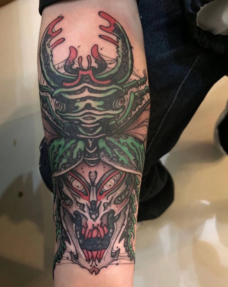 当前位置: 首页 >广西北海市纹身店-7号铁刺青纹身图案>西瓜绿甲虫纹身图片_手部纹身图案