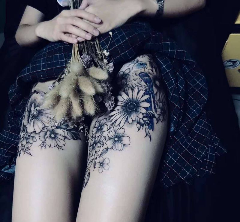 设计 疤痕遮盖纹身图片_腿部纹身图案