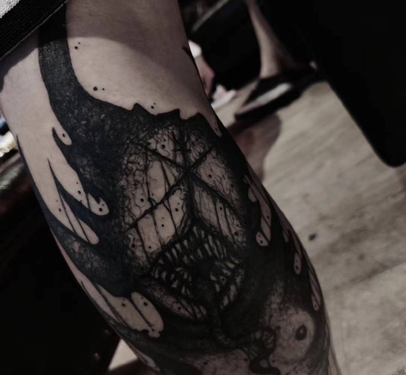 当前位置: 首页 >广西北海市纹身店-7号铁刺青纹身图案>设计 暗黑小腿纹身图片_腿部纹身图案