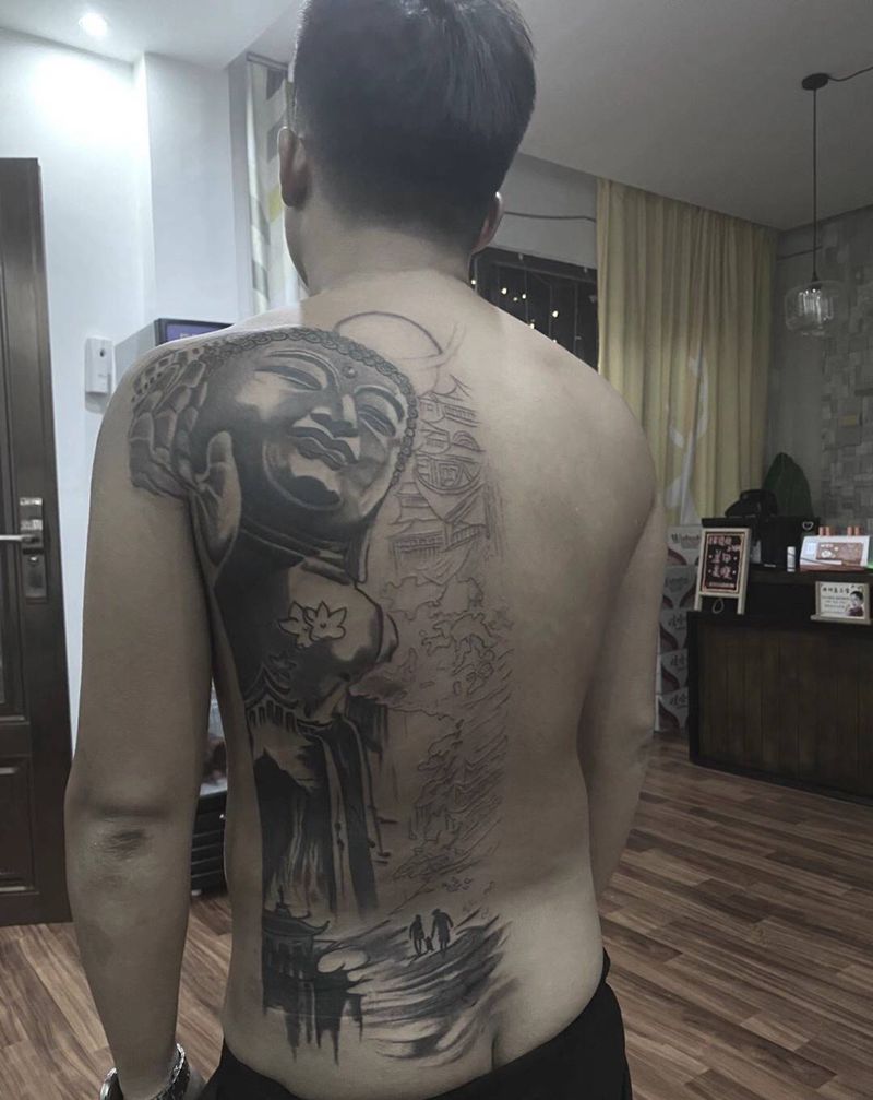 当前位置: 首页 >广西北海市纹身店-7号铁刺青纹身图案>半背石佛未完纹身图片_背部纹身图案
