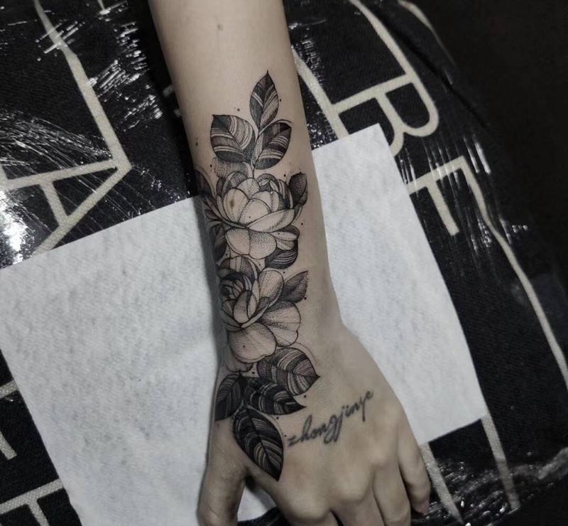 • 手背潮流时尚的玫瑰花眼睛纹身图案
