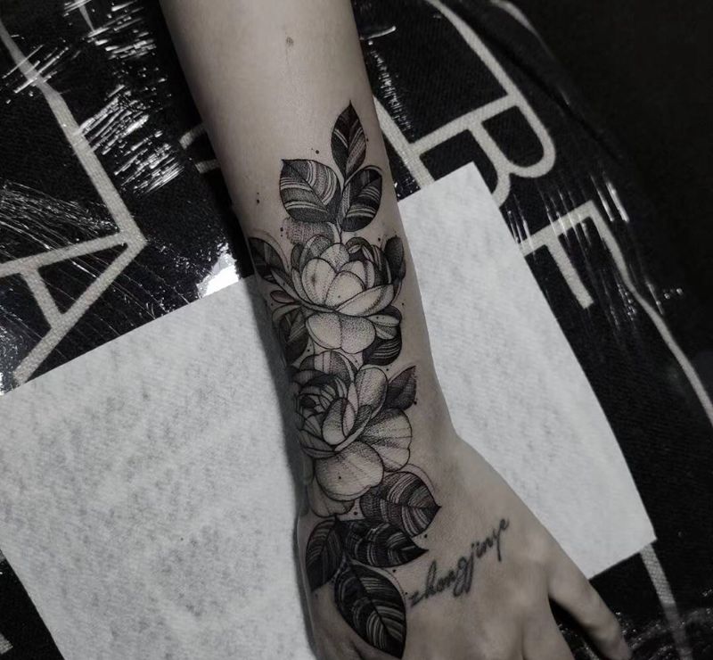 • 手背潮流时尚的玫瑰花眼睛纹身图案
