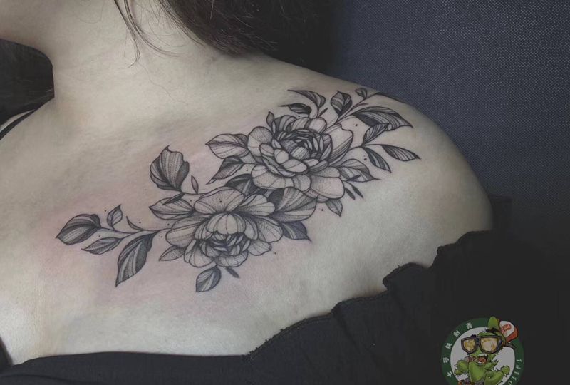 素花纹身图片_肩部纹身图案