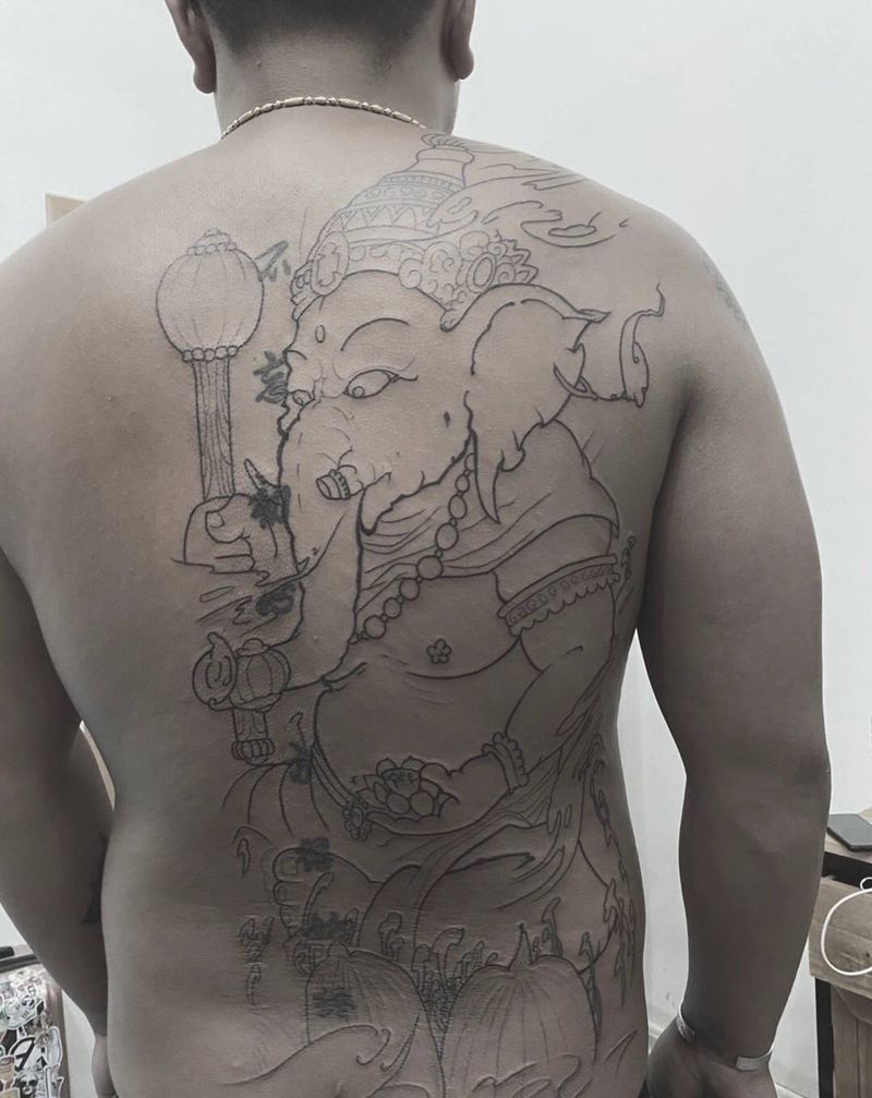 半背象神线纹身图片_背部纹身图案