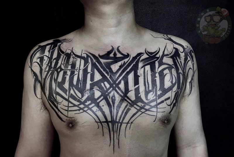 当前位置: 首页 >广西北海市纹身店-7号铁刺青纹身图案>花胸纹身图片_胸部花体字纹身图案