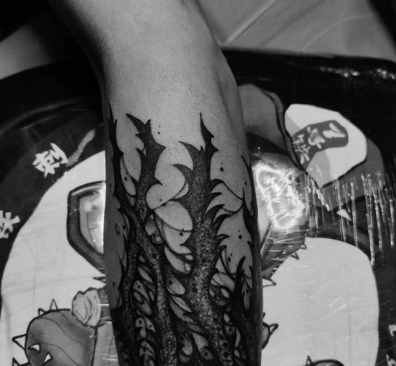 当前位置: 首页 >广西北海市纹身店-7号铁刺青纹身图案>设计 暗黑藤蔓添加纹身图片_手臂纹身图案