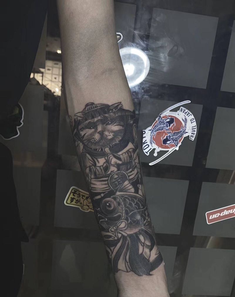 黑灰忍猫纹身图片_手臂纹身图案