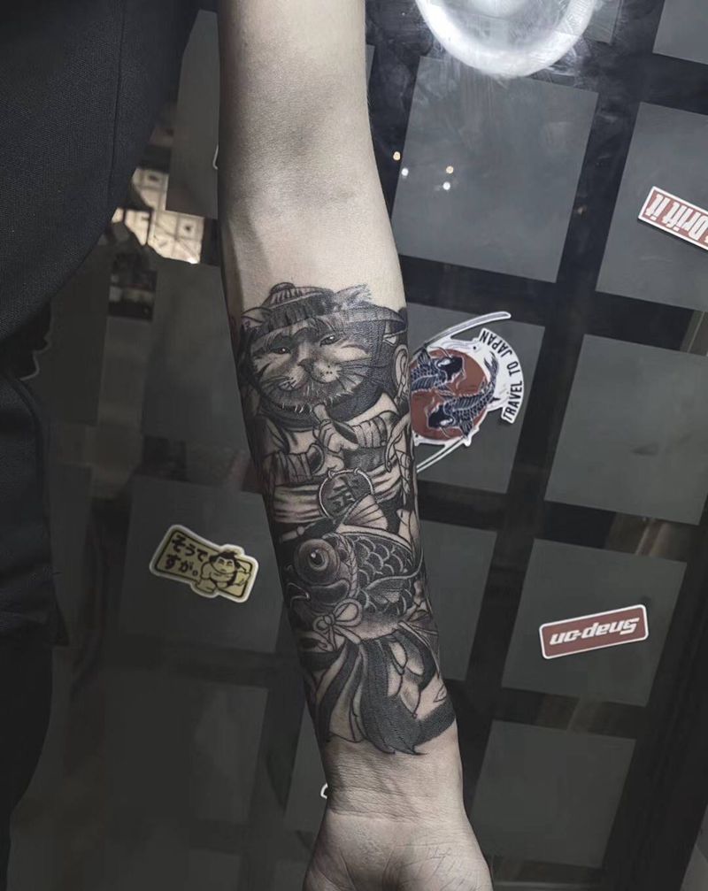 当前位置: 首页 >广西北海市纹身店-7号铁刺青纹身图案>黑灰忍猫纹身图片_手臂纹身图案