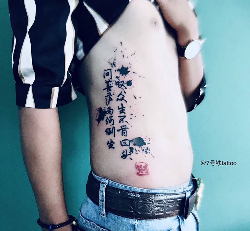 当前位置: 首页 >广西北海市纹身店-7号铁刺青纹身图案>P书法泼墨纹身图片_腰部纹身图案