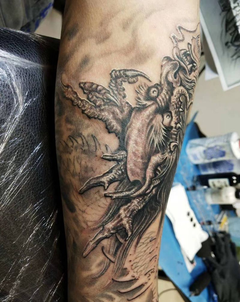 当前位置: 首页 >广西柳州市纹身店-云纹刺青纹身图案>龙 局部纹身图片_手臂手部新传统老传统纹身图案