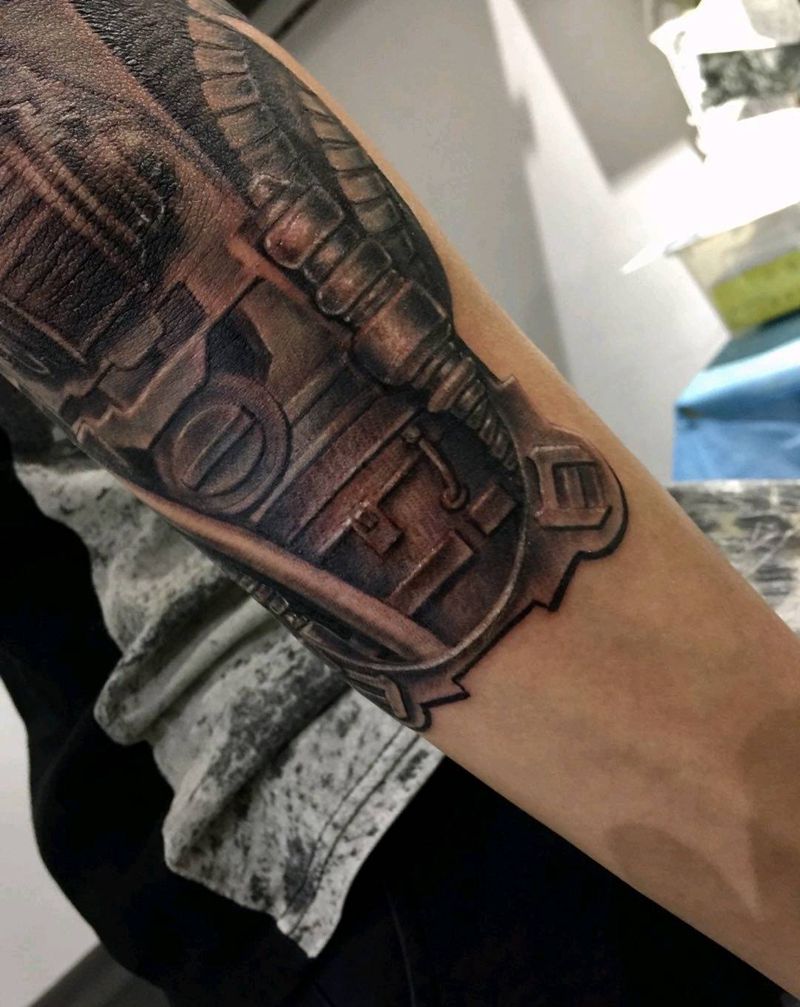 当前位置: 首页 >广西柳州市纹身店-云纹刺青纹身图案>拼装机械零部件纹身图片_手臂纹身图案
