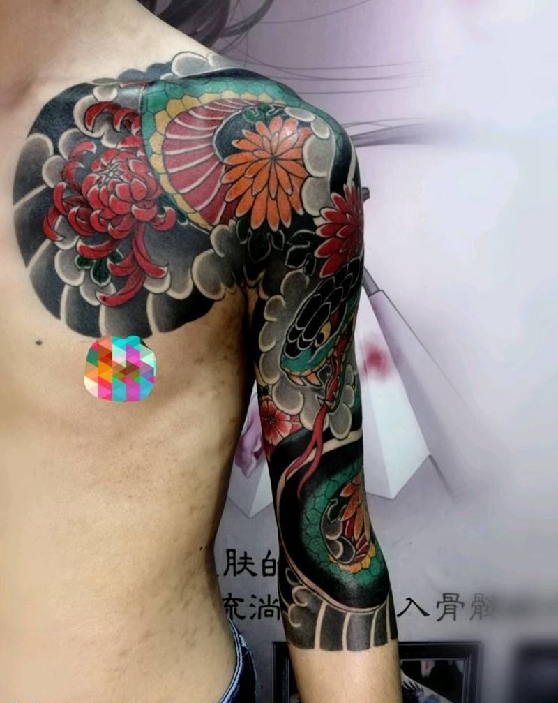 • 女性大花胸纹身_43张霸气漂亮的女性大花胸纹身图案作品