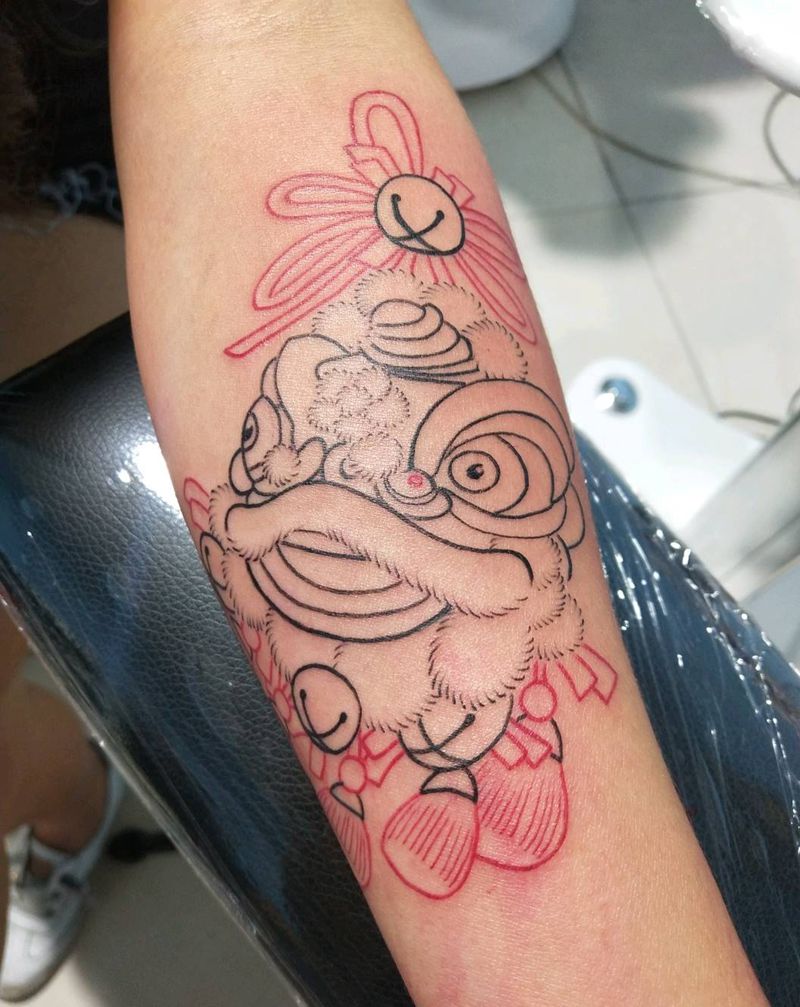 舞狮挂件纹身图片_手臂手部水彩新传统纹身图案