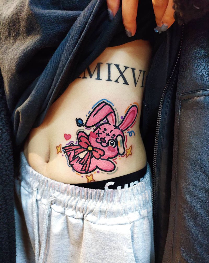 • T关于私处得爱!纹身图片_成品腹部清新字符图腾纹身图案