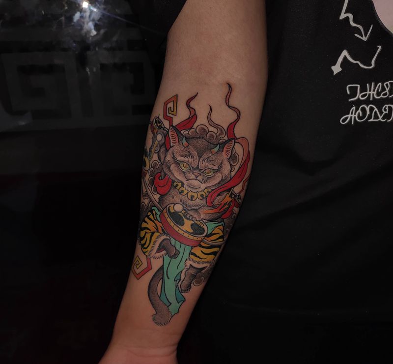 驻店纹身师雪妃作品纹身图片_手臂手部老传统猫纹身图案