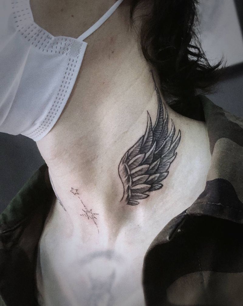 颈部翅膀纹身图片_颈部翅膀纹身图案