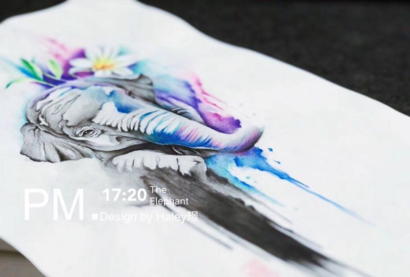 当前位置: 首页 >广西桂林市纹身店-HEYTATTOO黑塔兔纹身图案>[遮盖]原创之水彩小象纹身图片_手稿成品腿部动物水彩纹身图案