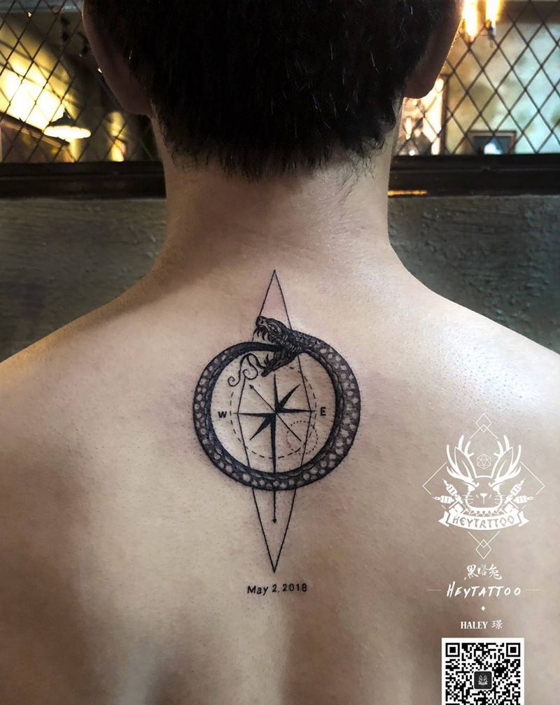 当前位置: 首页 >广西桂林市纹身店-HEYTATTOO黑塔兔纹身图案>原创之衔尾蛇纹身图片_成品背部动物原创纹身图案