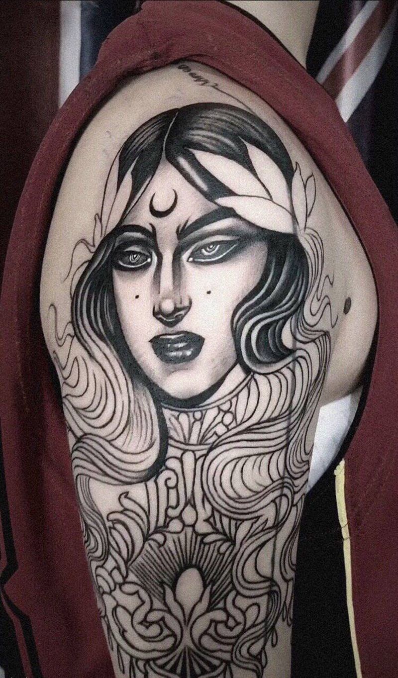 遮盖暗黑女神纹身图片_手臂Old School纹身图案