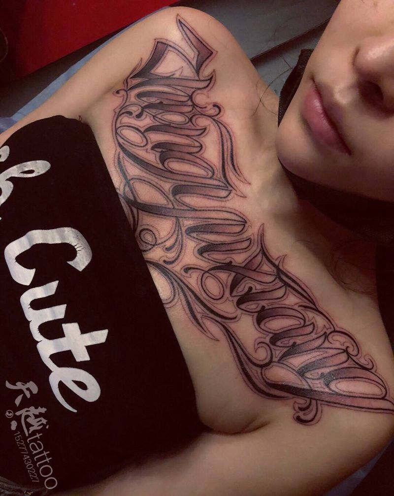 当前位置: 首页 >广西梧州市纹身店-梧州天越刺青纹身图案>花体字纹身图片_胸部花体字纹身图案