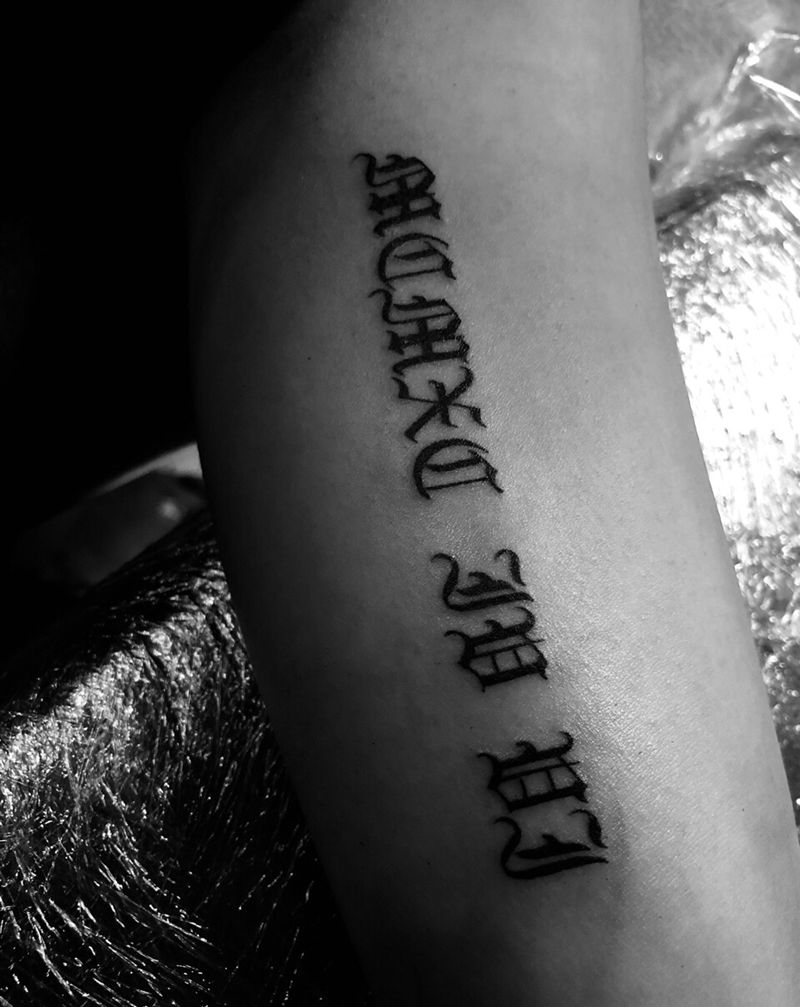 当前位置: 首页 >广西梧州市纹身店-梧州天越刺青纹身图案>哥特花体字情侣纹身作品纹身图片_手臂花体字纹身图案
