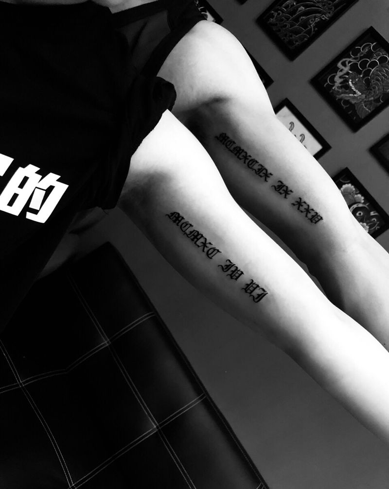 哥特花体字情侣纹身作品纹身图片_手臂花体字纹身图案