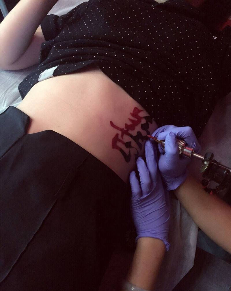 • T关于私处得爱!纹身图片_成品腹部清新字符图腾纹身图案