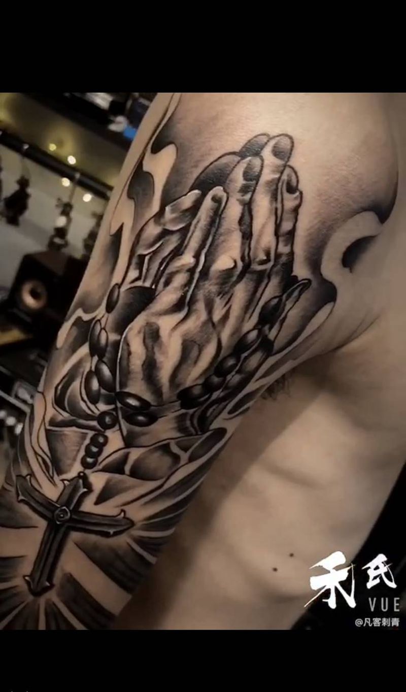 上帝之手纹身图片_手臂新传统纹身图案
