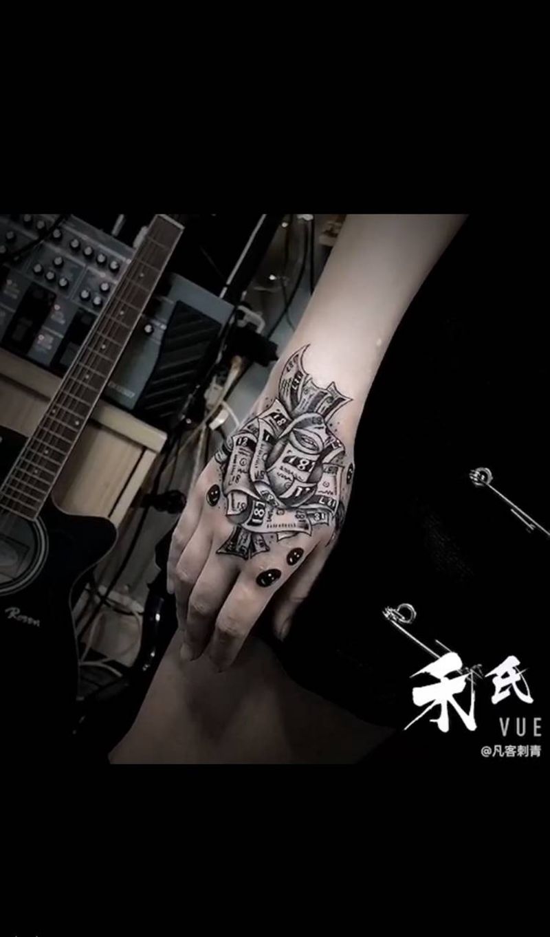 • 手背潮流时尚的玫瑰花眼睛纹身图案