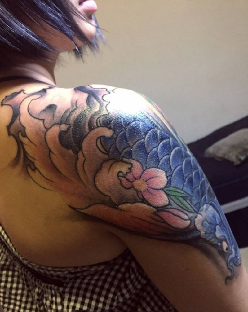 当前位置: 首页 >广西梧州市纹身店-梧州天越刺青纹身图案>鲤鱼纹身 遮盖作品纹身图片